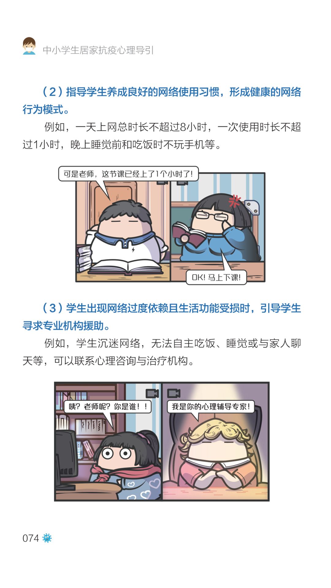 为了帮助广大青少年缓解心理压力,在教育部中小学心理健康教育专家指导委员会指导下,专委会委员周宗奎教授领衔华中师范大学心理学院和青少年网络心理与行为教育部重点实验室的多位专家教授,策划编写了《中小学生居家抗疫心理导引》一书。目前,以该创作团队为核心成员的教育部华中师范大学心理援助热线平台也已公开发布,同“心”战“疫”,携手前行!