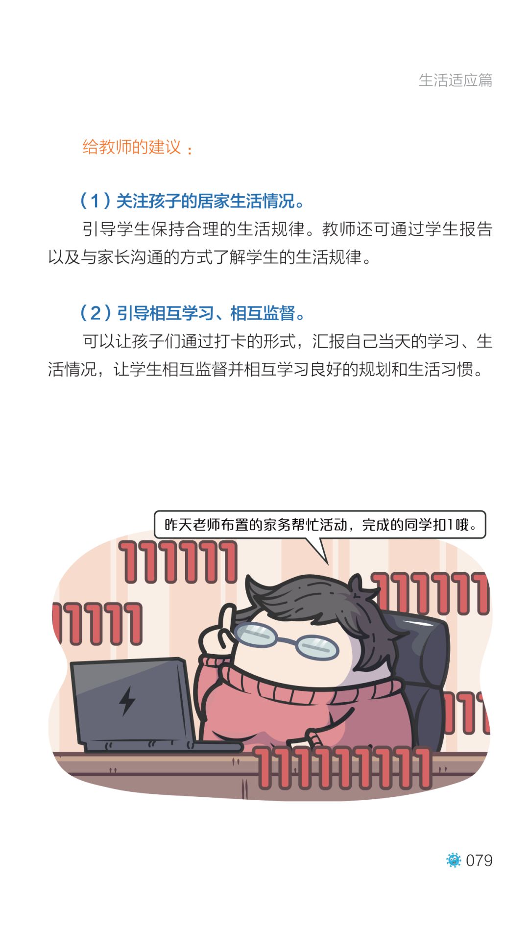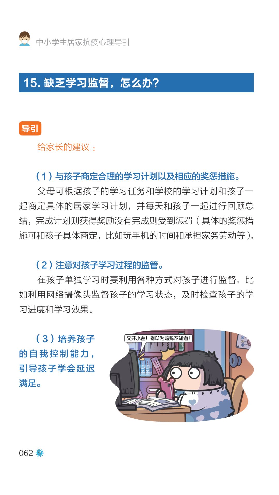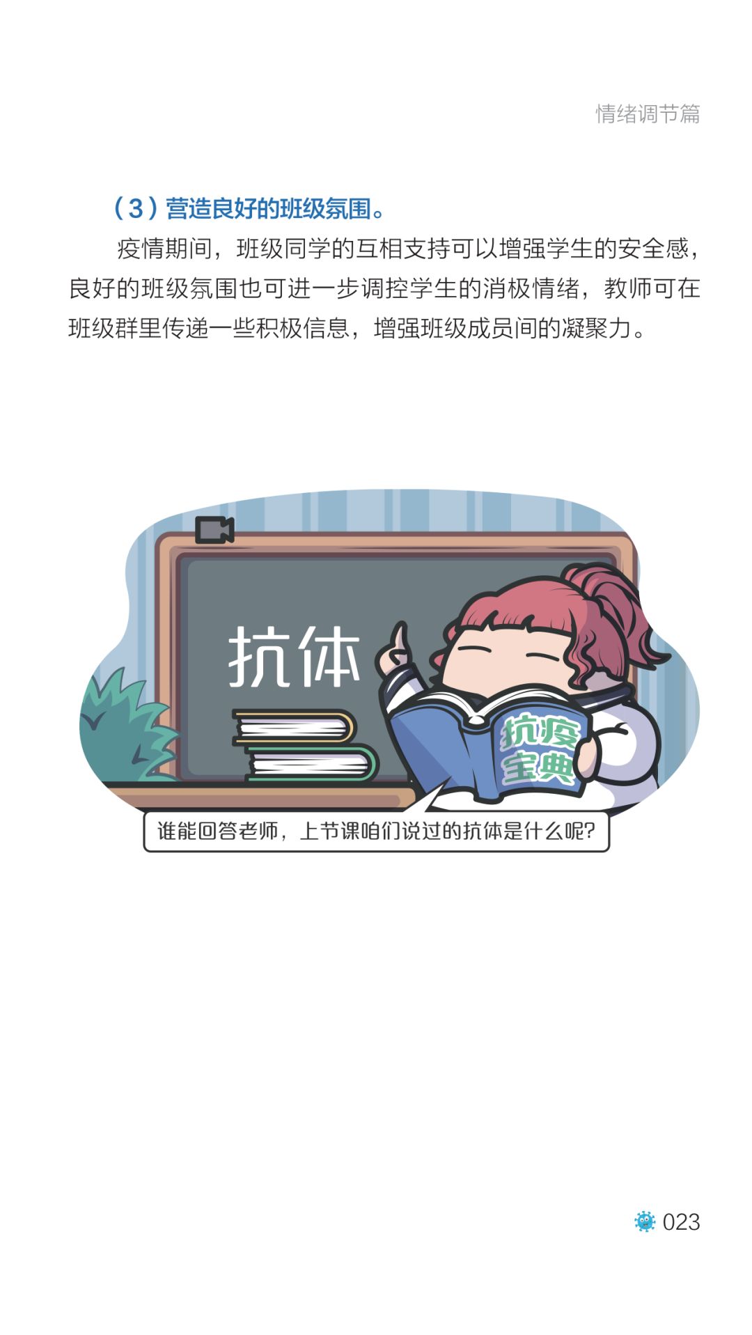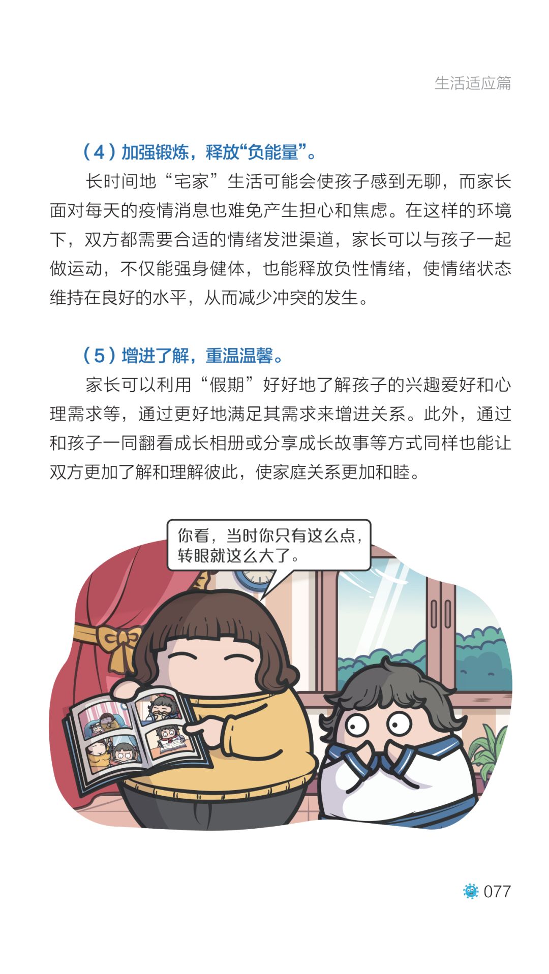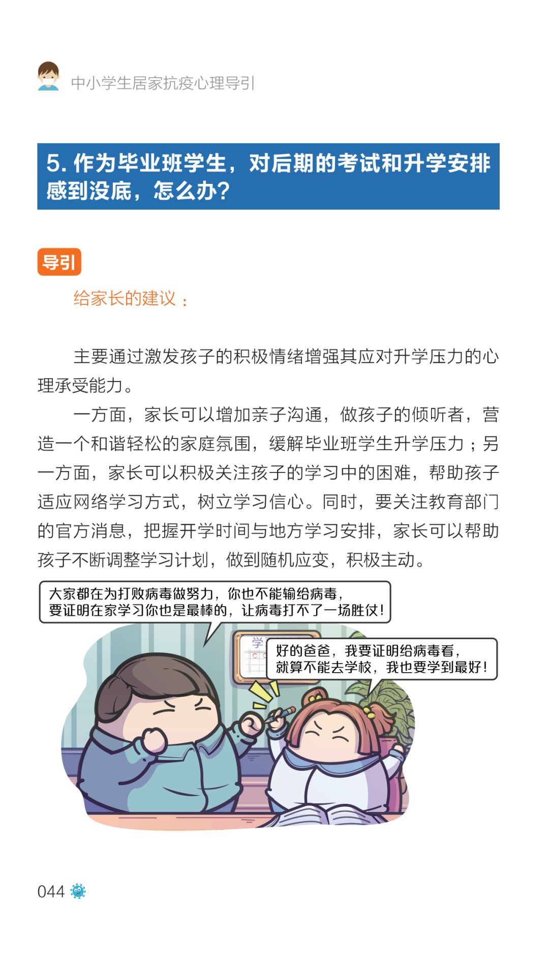 当他们面对大量有关疫情的信息无从分辨时,会感到恐惧和焦虑;当他们因疫情不得不长期居家难见朋友时,会感到拘束和烦闷;当他们因家人投入一线抗疫工作无法合家团圆时,会感到担忧和孤独;而在中小学全面开展在线教育时,他们更是面临着全新的挑战。