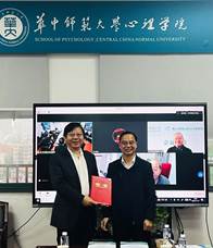 华中师范大学科技处副处长徐芬宣读了拟任重点实验室主任及学术委员会主任人选,其中心理学院院长孙晓军教授为拟任重点实验室主任,四川师范大学脑与心理科学研究院院长李红教授拟任学术委员会主任,并对重点实验室和学术委会新成员进行了聘书发放。