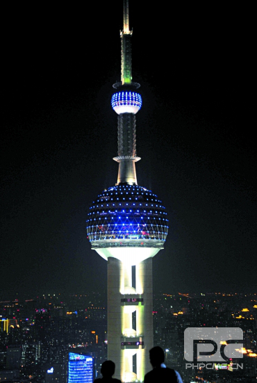 晚会结束后,黄鹤楼点亮蓝灯,呈现出梦幻般的色彩。