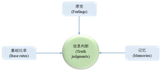 “加纳人离婚时需要穿上婚纱。”当你看到这句话时,虽然你没有任何对“加纳”的知识经验,也不知道任何其它相关信息,但你仍会倾向于认为这是事实(注意,是倾向于相信,而非绝对相信)。你可能会责怪自己的轻信,但根据贝叶斯模型的计算,先假定信息为真,然后再根据后续出现的新证据去进一步修改判断,其实是一种合理且简便的方法[3]。但麻烦在于,修改原有的“它很可能是对的”这一观点是需要消耗认知资源的,这就导致当你看到一则信息,然后紧接着去看其它的内容或者做其它的事情时,你很可能会忽视暂时存贮在你工作记忆里的信息细节,也就是说,你判断“这个信息是不是真的”的修正过程受到了干扰,因此,当你回想起原来的信息时,你就真的倾向于认为它是真实的[4]。还值得一提的一点是,信息中是否包含图片(即使图片与信息所表达的内容无关)也会显著影响人们对信息判断的基础比率[5]。人们会认为有图片的信息更可能是真实的,并且在做出这种判断时否认受到了图片的影响[6]。更麻烦的在于,图片的呈现提高了人们在社交媒体中分享该信息的意愿[7],从而让人们可能在不经意间就成为了宣传虚假消息的隐形推手。